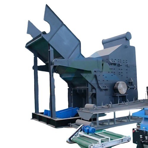 Il materiale viene inviato al trituratore a doppio albero attraverso il trasportatore per la frantumazione primaria.e poi lo invia al frantumatore verticale attraverso il trasportatore per la frantumazione secondaria. ,la frantumazione a martello dissocia completamente i frammenti di materiale, li spremono e li impastano in pellet ad alta densità,e le piccole particelle rotte vengono separate dal ferro contenuto nel materiale da un separatore magnetico, e il rame e l'alluminio rimanenti entrano nella macchina di smistamento a gravità specifica, per la smistamento fine, che separa il rame, l'alluminio e le altre impurità rimanenti.