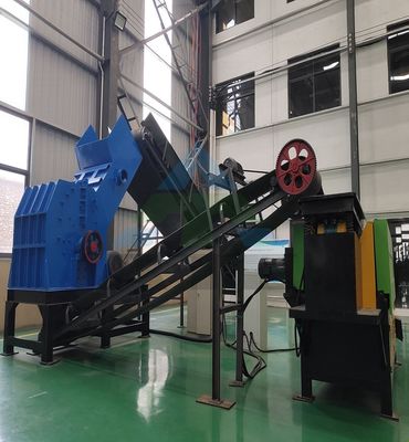 1、Il materiale viene inviato al frantumatore attraverso il trasportatore per la frantumazione primaria. 2、Il frantumatore spremere e strappare il materiale in piccoli pezzi,e poi lo invia al frantumatore verticale attraverso il trasportatore per la frantumazione secondaria.3■ Il martellatore dissocia completamente i frammenti di materiale, li spremono e li impastano in pellet ad alta densità.Le piccole particelle rotte sono separate dal ferro nel materiale da un separatore magnetico.5■ Il rame e l'alluminio rimanenti vengono inseriti nella macchina di smistamento per la classificazione fine, che seleziona il rame, l'alluminio e le altre impurità rimanenti.